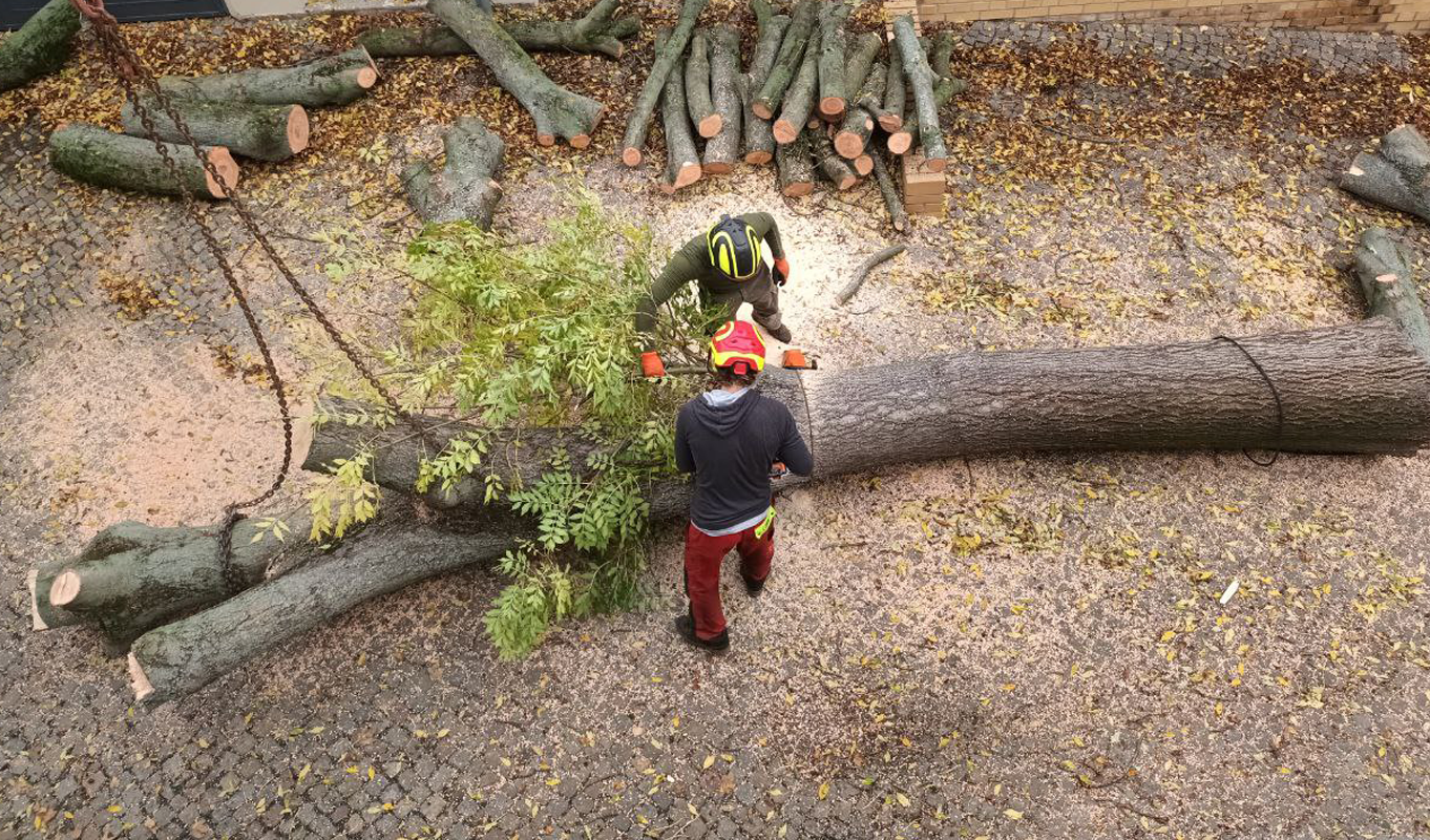 Selbst wenn nach einem Sturm Kronenteile zu bergen oder ganze Bäume aufzuarbeiten sind, wird kompetent und zügig gehandelt, um möglichst schnell alle weiteren Gefahren zu bannen.